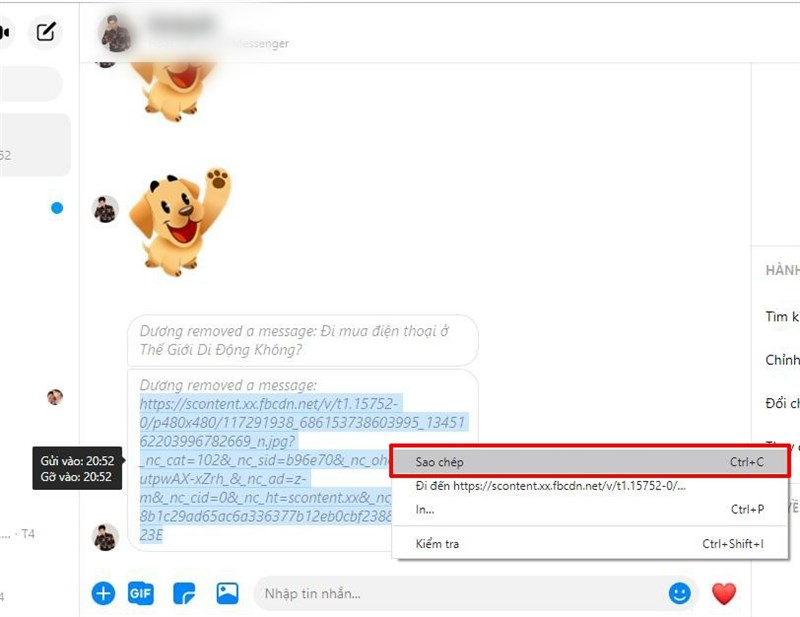 Đối với tin nhắn hình ảnh được thu hồi, bạn chỉ cần copy đường link được đưa ra trong đoạn thoại -> Mở Tab khác -> Dán đường link vào. Ngay lập tức bức ảnh được đối phương thu hồi sẽ hiện ra trên màn hình.