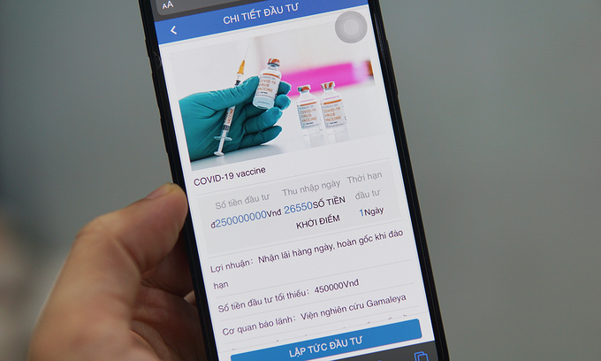 Người dùng được dụ đầu tư vào gói vaccine trên app để thu lời mỗi ngày.