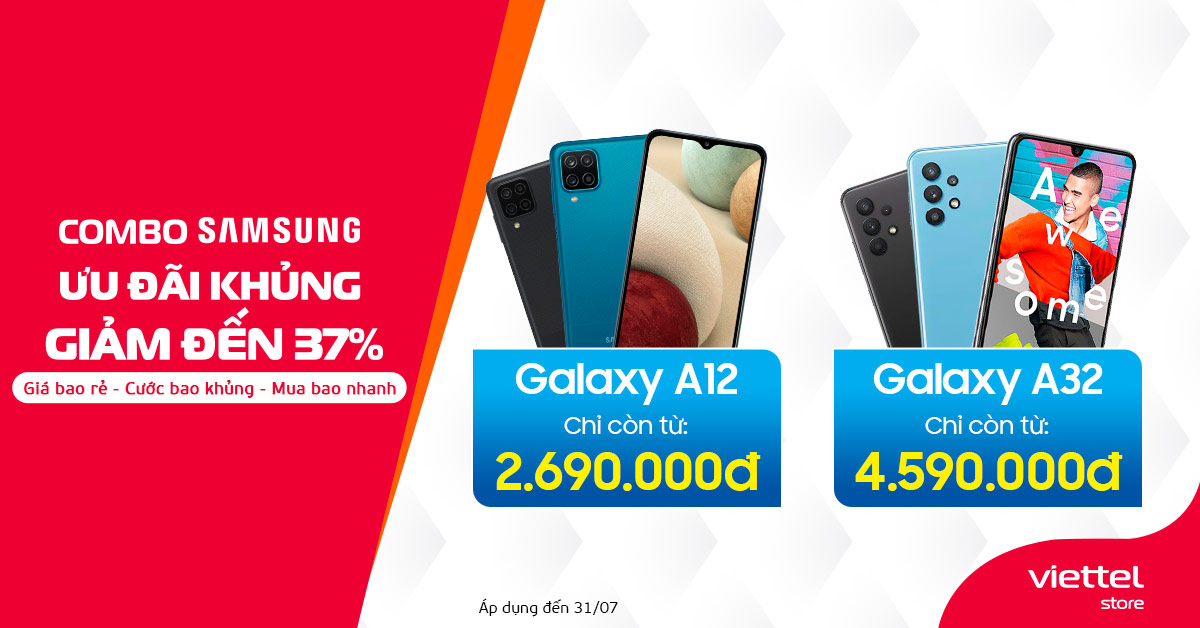 Có thể thấy, Samsung Galaxy A12 và Samsung Galaxy A32 4G là 2 sản phẩm smartphone trong phân khúc có mức giá “dễ chịu” nhất và phù hợp với mọi đối tượng người dùng, được Viettel Store đầu tư phối hợp với Samsung và Viettel Telecom để vừa có ưu đãi từ hãng, vừa áp dụng ưu đãi gói cước từ nhà mạng để có mức giá tốt nhất thị trường hiện tại. Hơn tất cả, khách hàng là người được hưởng lợi đầu tiên từ chương trình.