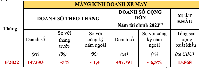 Theo đó, tổng doanh số xe tay ga của HVN trong tháng 6 giảm sâu hơn một nửa so với cùng kỳ năm ngoái.