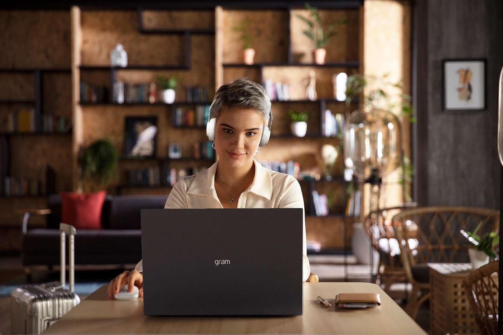 - Với LG gram 2022, bạn vô tư hơn khi mở tài liệu công việc nơi công cộng! Webcam AI được ứng dụng vào tính năng chống nhìn trộm để tăng bảo mật, chẳng hạn là khoá màn hình khi phát hiện bạn không còn ngồi trước laptop, hay làm mờ màn hình khi phát hiện người khác nhìn vào, giảm nguy cơ rò rỉ thông tin quan trọng.