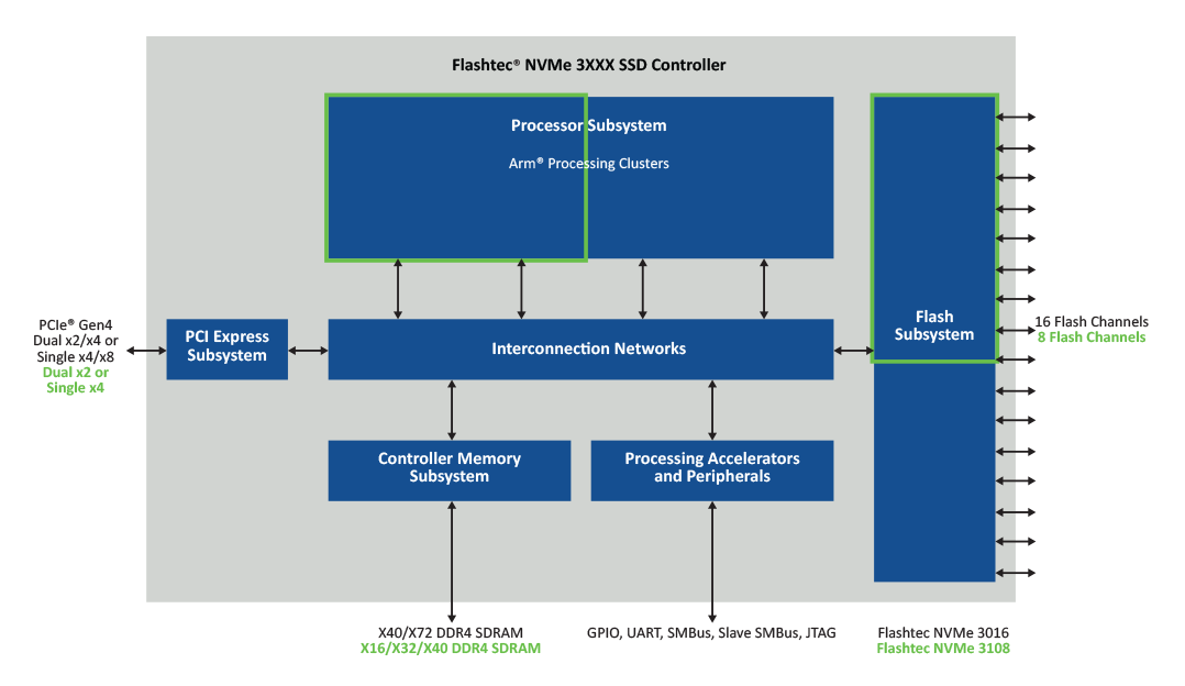 Những ổ SSD này đòi hỏi bộ xử lý có kích thước và mức tiêu thụ điện năng tối ưu trong khi vẫn khai thác tối đa tiềm năng của ổ NAND Flash và cung cấp được một tập hợp tính năng phong phú cùng độ linh hoạt mà những ổ NVMe SSD ở cấp độ doanh nghiệp này đòi hỏi.