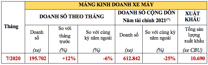 Ở mảng xe máy, trong tháng 7 toàn thị trường Việt Nam tiêu thụ 195.702 xe, tăng 12% so với tháng trước và giảm 6% so với cùng kỳ năm ngoái, cụ thể: