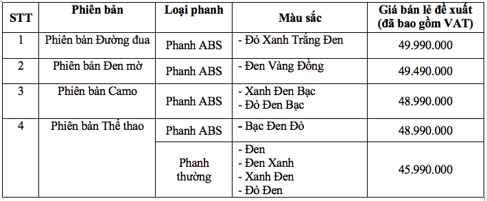 Phiên bản tem màu mới WINNER X sẽ chính thức được bán ra thị trường từ ngày 30 tháng 8 năm 2020 thông qua các cửa hàng Bán xe và Dịch vụ do Honda Ủy nhiệm (HEAD) trên toàn quốc với thời gian bảo hành 3 năm hoặc 30.000 km tùy theo điều kiện nào đến trước và mức giá bán lẻ đề xuất như sau: