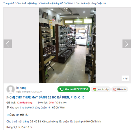 Một tin đăng cho thuê mặt bằng trên bds123.vn. Nguồn: Mai Linh