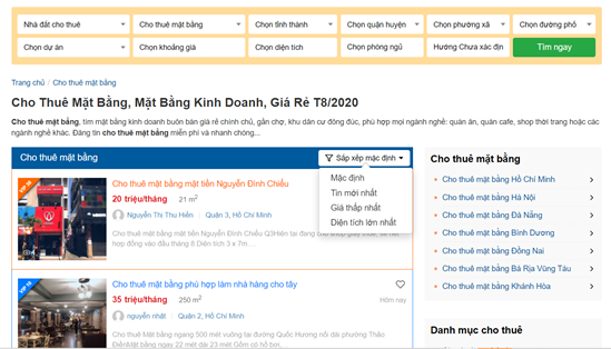 Một trong những lý do không thể thiếu để Bds123.vn được tin tưởng sử dụng trong cộng đồng kinh doanh bật động sản là việc bố trí website thông minh. Điều này giúp khách hàng dễ dàng chọn mặt bằng cho thuê phù hợp với các tiêu chí mình để ra. Bds123.vn phân nhóm các loại tin cho thuê mặt bằng theo vị trí địa lý (tỉnh thành, quận huyện, phường xã, đường phố); phân theo dự án; khoảng giá; diện tích…