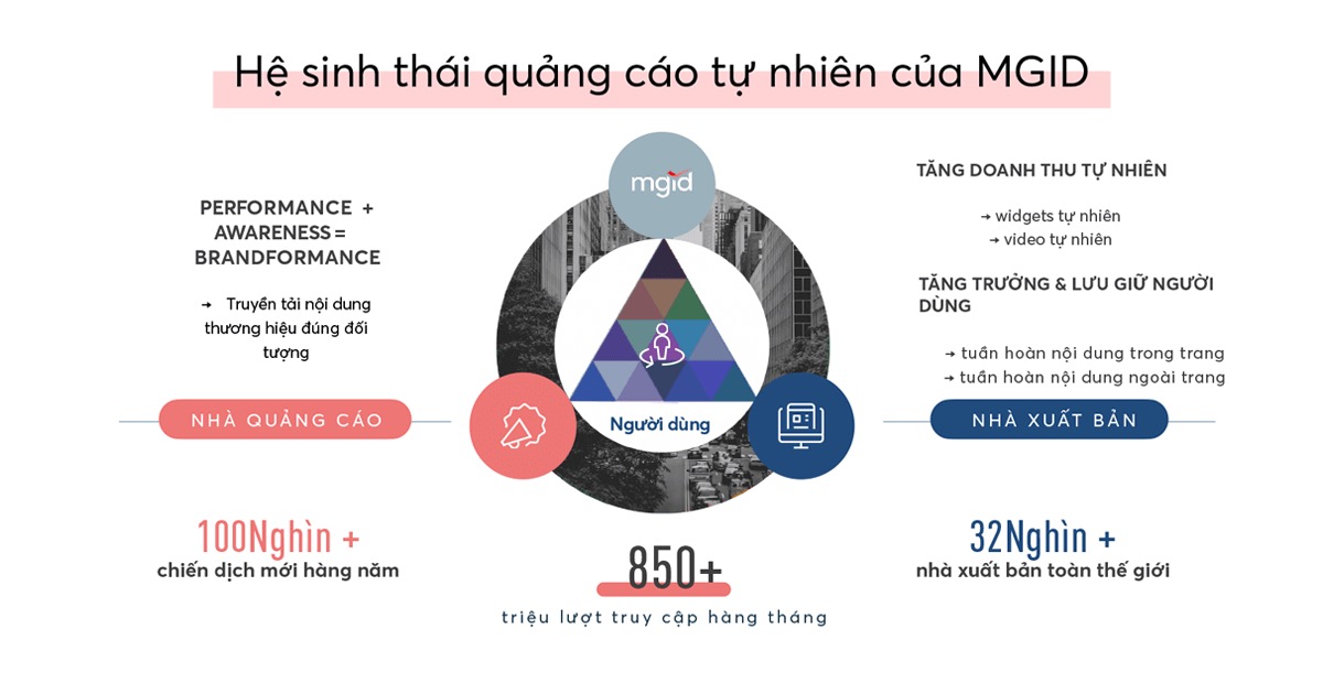 Với sự bùng nổ của COVID-19 làm gián đoạn thị trường và hành vi của người tiêu dùng không thể đoán trước, MGID hiện đang tập trung vào việc tăng cường mối quan hệ với các thương hiệu và đại lý quan trọng trong khu vực để giúp họ điều chỉnh chiến lược quảng cáo theo trạng thái bình thường mới. MGID không chỉ mang lại lượng người mới cho các agencies từ mối quan hệ trực tiếp của họ với các nhà xuất bản cao cấp mà còn giới thiệu các định dạng quảng cáo tự nhiên. Tất cả đều được đảm bảo bằng thuật toán AI-based user-to-product của MGID (tạm dịch: mang sản phẩm đến người dùng).