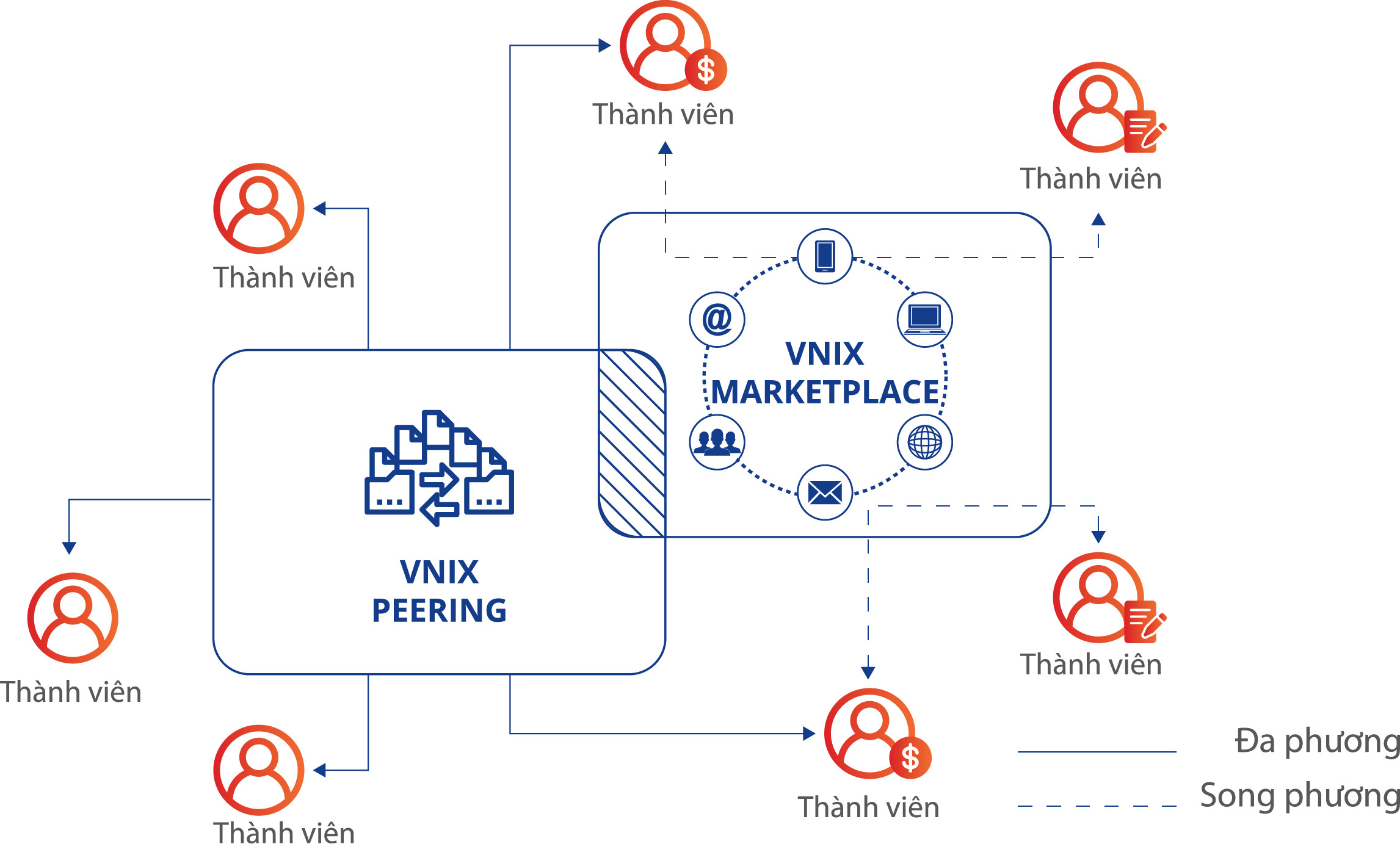VNIX được xây dựng theo mô hình hệ sinh thái số, kết hợp VNIX Peering và VNIX Marketplace (https://vnix.vn)