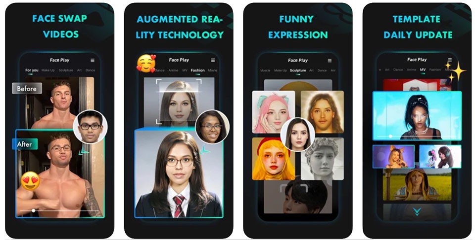FacePlay là một ứng dụng ghép mặt vào video cổ trang Trung Quốc. Những video được sản xuất bởi FacePlay đang được lan truyền mạnh mẽ trên mạng xã hội như Facebook, Instagram, Tiktok…Đặc điểm của ứng dụng này là nó sẽ sử dụng ảnh của một người sau đó phân tích những điểm trên khuôn mặt bằng AI. App FacePlay tiếp tục sử dụng AI để hợp nhất hai đặc điểm khuôn mặt thành một (khuôn mặt của người dùng app và khuôn mặt trong video cổ trang).