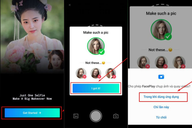 Bước 7: Tiếp theo bạn nhấn vào nút Get Started trên màn hình -> chọn I go it -> Trong khi dùng ứng dụng để bắt đầu sử dụng FacePlay.