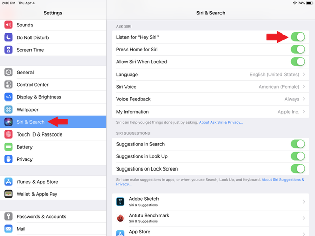 Cách thực hiện như sau: Bạn vào Cài đặt -> Siri & Tìm kiếm -> Tắt Nghe “Hey Siri”.
