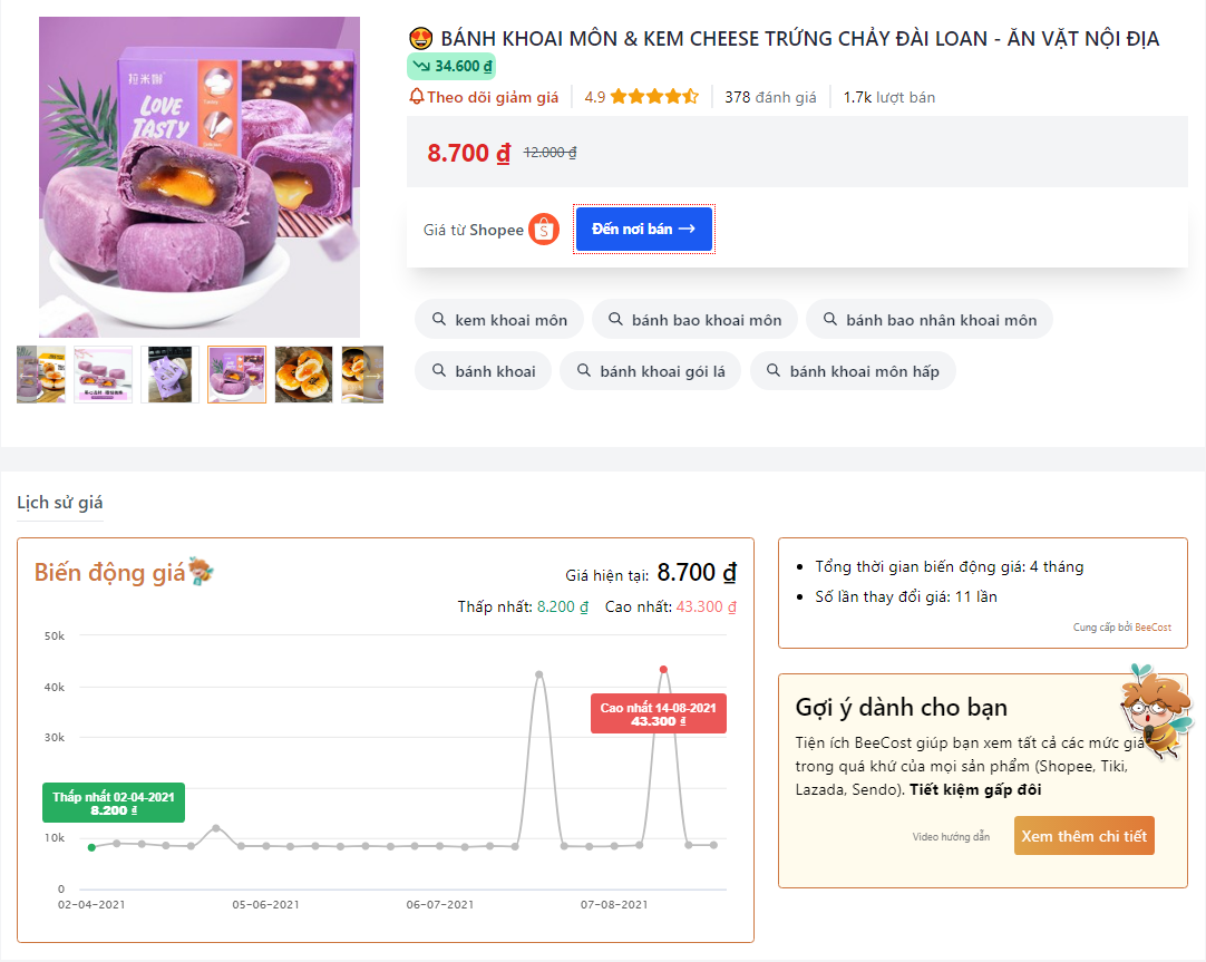 Nhờ khả năng phân tích big data, thông tin giá của sản phẩm trong khoảng thời gian từ lúc sản phẩm lên kệ đến hiện tại, BeeCost có dữ liệu lịch sử giá chính xác người dùng dựa vào thông tin đó để tránh khi mua phải lúc sản phẩm đang “sale ảo”, giá đang cao