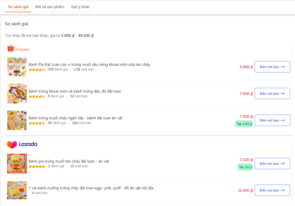 - Đưa ra các lựa chọn nơi bán sản phẩm, mẫu mã tương tự với mức giá rẻ hơn.