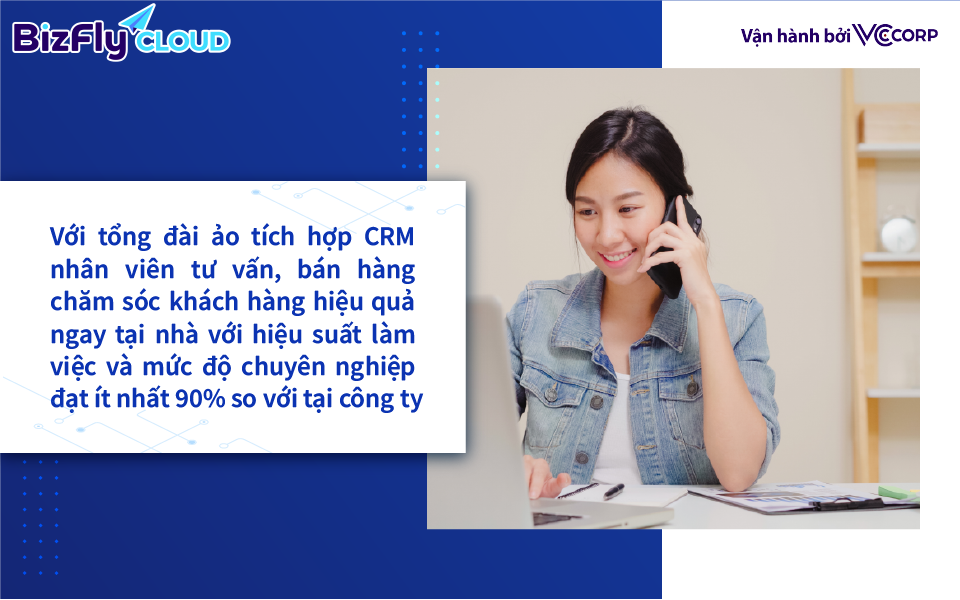 Vì thế, nhân viên vẫn có thể tư vấn, bán hàng chăm sóc khách hàng hiệu quả ngay tại nhà với hiệu suất làm việc và mức độ chuyên nghiệp đạt ít nhất 90% so với tại công ty. Bên cạnh đó, doanh nghiệp quản lý được chất lượng và hiệu suất làm việc thực chất của sale, nhân viên tư vấn, chăm sóc khách hàng từ xa.