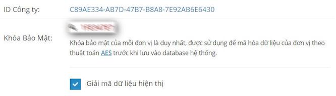 (Mã hoá tiêu chuẩn AES với chìa khoá riêng cho tài khoản mỗi doanh nghiệp, tổ chức)