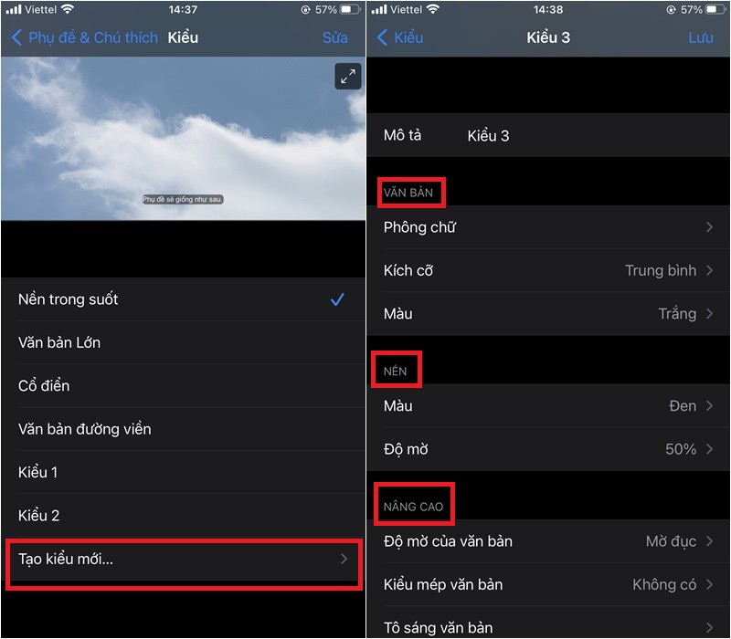 Bước 4: Nếu như bạn không chọn được kiểu hiển thị như ý muốn thì có thể vào mục “Tạo kiểu mới” để tự thiết lập cách hiển thị phụ đề theo ý muốn. Tại đây, bạn có thể tuỳ chỉnh được các yếu tố như: