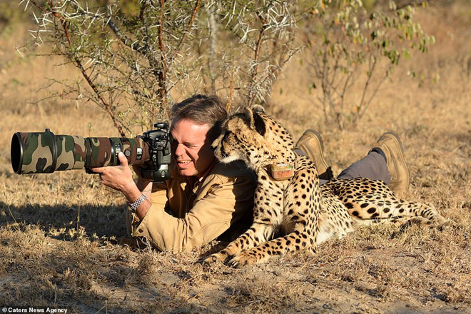 Con báo Mtombi thích thú nhìn nhiếp ảnh gia Chris Du Plessis tác nghiệp.