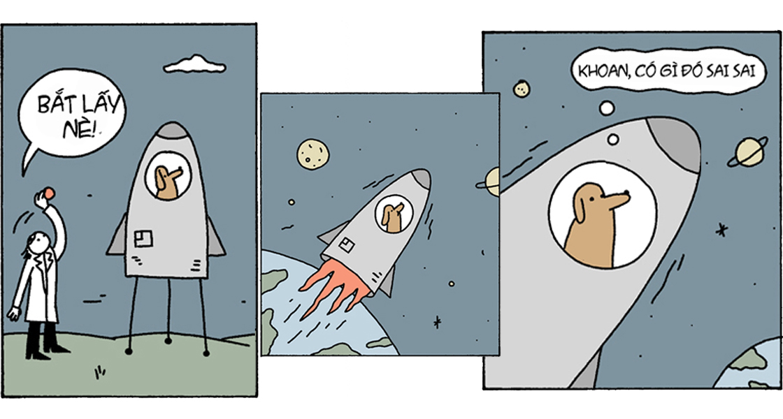 * Chuông điện thoại reo ở căn hộ của một nhà du hành vũ trụ. Cô bé ở nhà một mình nhấc máy trả lời: