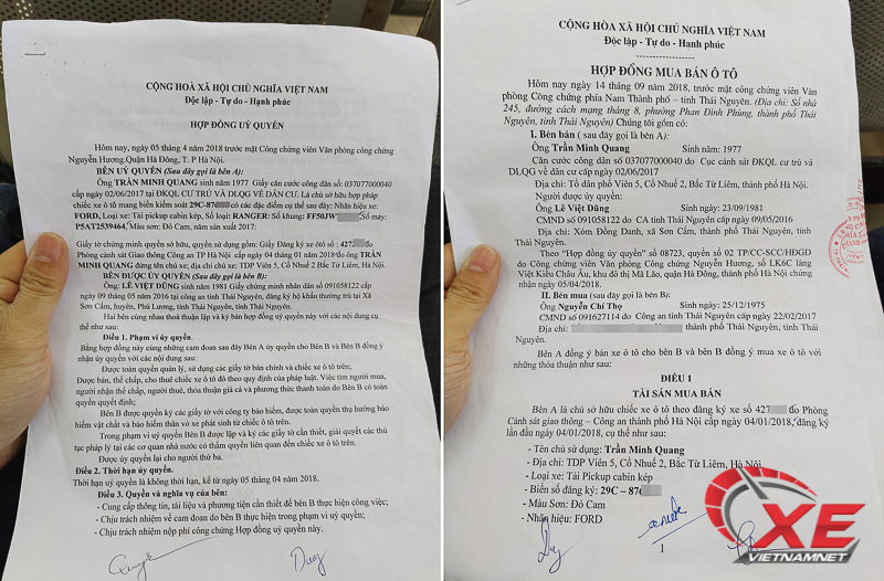 Hợp đồng ủy quyền mua xe. Ảnh: Vietnamnet