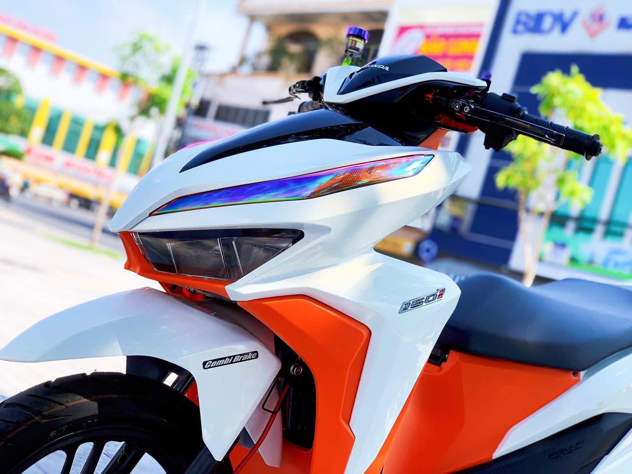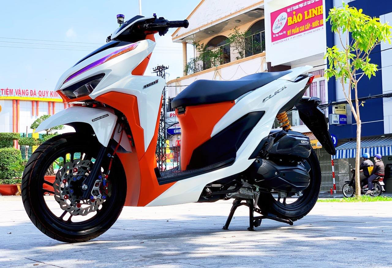 Mới đây, một dân chơi xe đã độ lại chiếc Honda Click 150i của mình với một diện mạo hoàn toàn mới khiến giới độ xe “say như điếu đổ”. Đặc biệt với gam màu trắng - cam thể thao kết hợp với dàn chân đen cùng logo chữ nổi Click, cùng với những món đồ chơi cực chất đã làm cho chiếc xe thêm phần thú vị.