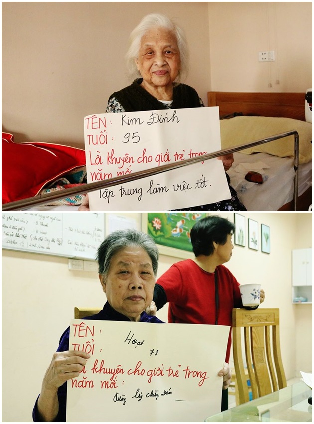Bạn Hải Linh điều dưỡng tại trung tâm dưỡng lão – cũng là người chia sẻ bộ ảnh cho biết: "Khi hỏi các ông các bà có lời khuyên nào không, thì các ông các bà bảo có rất nhiều lời khuyên, nhưng tay run quá nên không viết được, nên nhờ các bạn nhân viên viết hộ. Mình thấy đáng yêu quá nên lưu lại ảnh và muốn chia sẻ đến với tất cả mọi người”.