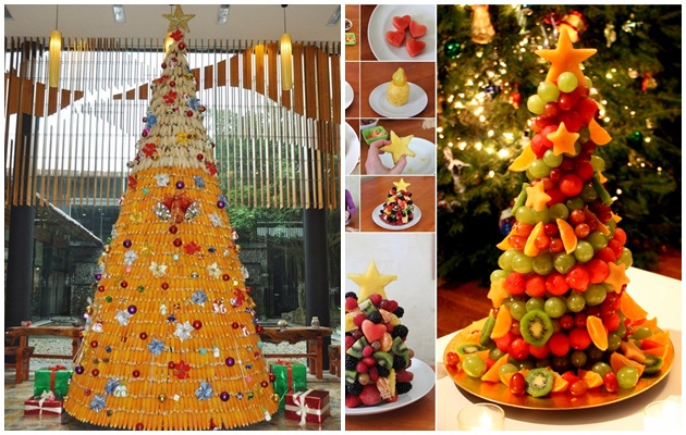 Cây thông lạ mắt với ngô và hoa quả, nhìn là muốn ăn