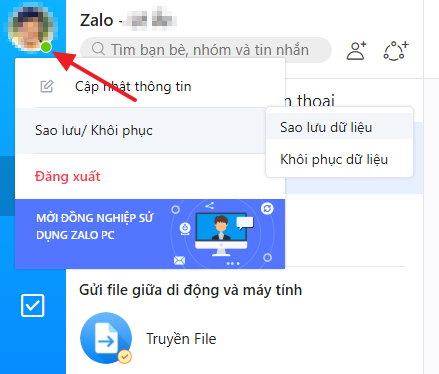 Tuy nhiên, tùy chọn Sao lưu/Khôi phục không nằm trong trình đơn Cài đặt của Zalo, mà là một thành phần riêng biệt, nằm ẩn bên dưới trình đơn xổ xuống bên cạnh ảnh đại diện ở phía trên góc trái cửa sổ ứng dụng. Bởi vayah, dù đã bổ sung tính năng này nhưng hiện tại còn rất nhiều người dùng không biết đến sự tồn tại của tính năng này.