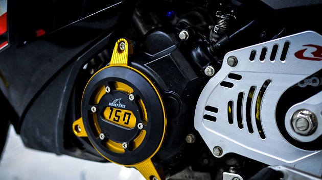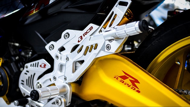 Cùng với đó là trang bị số gãy RCB chính hãng này, với thiết kế có tính thẩm mỹ cao kết hợp nhiều màu sắc, giúp bản độ này trông nổi bật hơn. Tiếp đến là nhông sên dĩa X Steel chính hãng X1R màu sắc phun vàng, với trọng lượng nhẹ nên khả năng chống tải rất tốt, kết hợp cùng mâm Asio trở nên ăn khớp tạo vẻ đẹp mới, cuốn hút hơn rất nhiều.