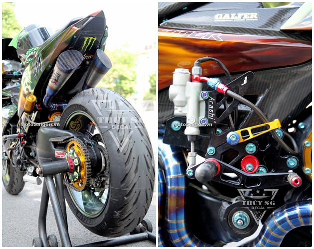 Theo đó, chiếc Exciter độ BMW S1000RR này có kích thước bánh to và hàng loạt món đồ chơi hàng hiệu đã được thay thế từ ngoại hình dàn áo, đến dàn chân trước sau… với sự trau chuốt cẩn thận, tỉ mỉ đến từng chi tiết nhỏ nhất.