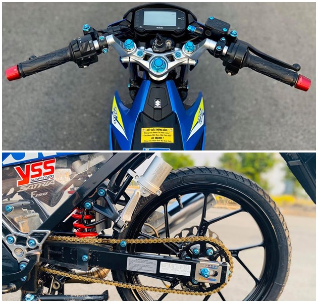 Cùng với đó là hệ thống treo sau sử dụng phuộc YSS bình dầu rời để tăng thêm sự nổi bật cho chiếc xe. Phần nhựa nhám của xe và một vài chi tiết đã được tháo bỏ hết hoàn toàn để giúp chiếc xe thêm phần gọn gàng hơn và show được khá nhiều chi tiết đồ chơi hơn.