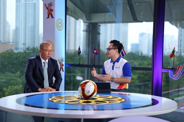 Thầy Park hồi hộp chia sẻ về hành trình tại SEA Games 31 với Biên tập viên Quang Tùng của VTV.