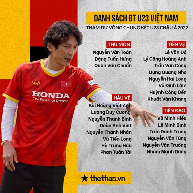 Danh sách U23 Việt Nam dự VCK U23 châu Á do HLV Gong Oh Kyun tuyển chọn. Ảnh: thethao.vn.