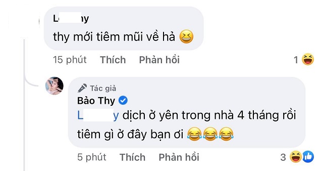 Đáng chú ý, giữa vô vàn khán giả khen nức nở nhan sắc của Bảo Thy thì có một netizen bất ngờ hỏi: "Thy mới tiêm mũi về hả". Nữ ca sĩ sinh năm 1988 liền đáp lại nhẹ nhàng, khôn khéo: "Dịch ở yên trong nhà 4 tháng rồi tiêm gì ở đây bạn ơi".