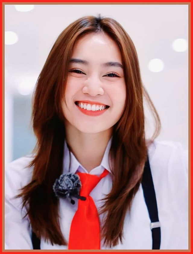 Nàng "ngọc nữ màn ảnh Việt" diện đồng phục nữ sinh đen trắng với điểm nhấn là chiếc cà-vạt đỏ tươi. Mái tóc thẳng rẽ ngôi giữa ôm lấy gương mặt thon gọn của nữ diễn viên. Lan Ngọc với style học sinh đem lại cảm giác tươi mới, trong veo. Thân hình mảnh mai, đôi chân thon dài thẳng tắp đích thị là lợi thế giúp cô cân được mọi loại trang phục. Không cần make up cầu kì, chỉ cần tô điểm nhẹ nhàng đã giúp gương mặt của người đẹp sinh năm 1990 trở nên cuốn hút, ngây thơ, trong sáng như thiếu nữ đôi mươi.