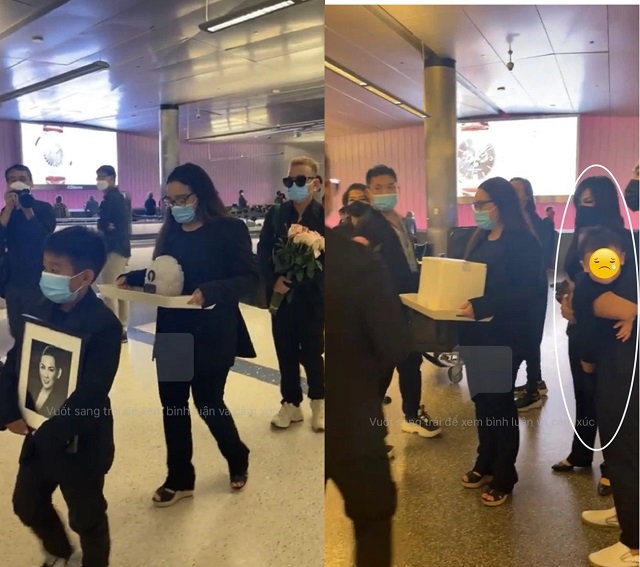 Đây là dịp hiếm hoi mà con gái Phi Nhung công khai xuất hiện với gia đình nhỏ của mình. Con trai lớn của cô - tức là cháu ngoại giọng ca Bông Điên Điển - ôm chặt di ảnh của bà vào lòng, ánh mắt ngây thơ như chưa hiểu rõ mọi chuyện khiến mọi người không khỏi đau lòng xót xa. Chứng kiến mẹ và Việt Hương rơi nước mắt ôm chầm lấy nhau, bé chỉ ngước nhìn đầy kinh ngạc. Cậu bé còn quá nhỏ để có thể cảm nhận được nỗi đau, nỗi mất mát to lớn khi người thân, nhất là mẹ ruột ra đi mãi mãi. Con thứ 2 của Wendy Phạm mới 7-8 tháng tuổi cũng được dẫn theo, nằm gọn trong vòng tay của người nhà.