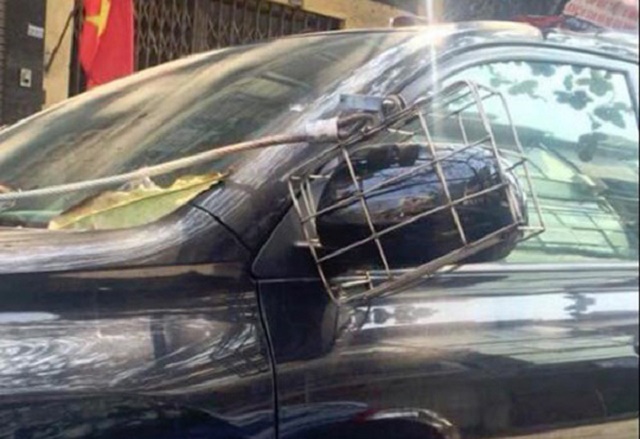 Đáng chú ý là một chiếc xe Toyota được chủ xe tự chế thùng sắt bao quanh rất chắc chắn. Chiếc thùng sắt này còn được gắn với bánh xe, có ổ khóa cẩn thận. Khi tài xế đỗ xe lại thì khóa gương bằng thùng đó, lúc cần đi lại mở ra. Thậm chí chủ xe còn cẩn thận dùng thảm xốp chèn giữa thùng sắt và thân xe để tránh trầu xước xe.