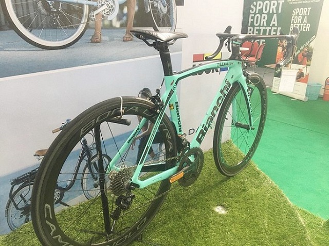 Bianchi Oltre XR4 xuất hiện tại Triển lãm Quốc tế xe hai bánh Việt Nam vừa diễn ra tại Hà Nội. Chiếc xe này là mẫu xe đạp đua đường trường được sản xuất bởi thương hiệu xe đạp Bianchi – thương hiệu lâu đời nhất Thế giới của Ý, có lịch sử từ năm 1885.