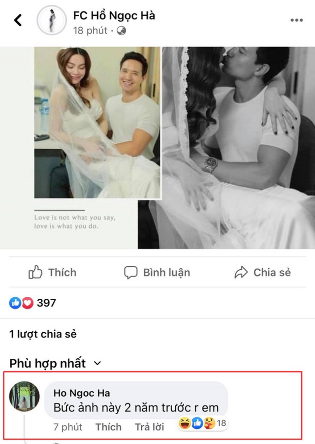 Thế nhưng, vào sáng 23/11, Hồ Ngọc Hà đã tiết lộ sự thật rằng hình ảnh này được chụp từ 2 năm trước chứ không phải mới đây như mọi người đoán. Tức là nhiều khả năng Kim Lý và Hà Hồ đã có sự chuẩn bị cho hôn lễ từ khá lâu, hoặc đây vốn không phải là buổi chụp ảnh cưới như cộng đồng mạng nghĩ mà chỉ là buổi chụp ảnh bình thường của cặp đôi.
