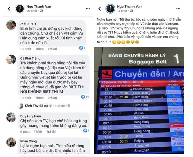 Thời điểm bài đăng của cô được đăng tải là khi Cục hàng không đã dừng cấp phép các chuyến bay từ Việt Nam đi Vũ Hán và ngược lại khiến cô bị khán giả phản ứng. Ngay sau dòng trạng thái, hàng loạt bình luận cho rằng Ngô Thanh Vân chưa tìm hiểu thông tin cặn kẽ, dễ gây hoang mang dư luận.