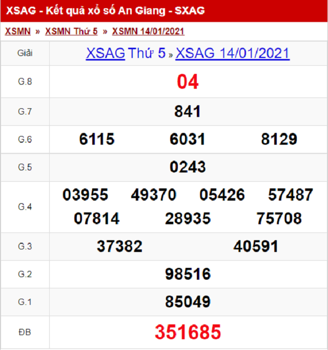 Kết Quả Sổ Xố An GiangThứ 5 ngày 14/1/2021