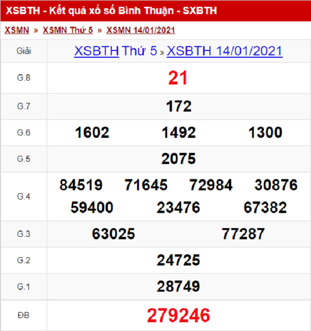 Kết Quả Sổ Xố Bình Thuận Thứ 5 ngày 14/1/2021