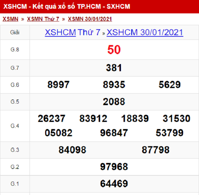 Dưới đây là kết quả XSMN xổ số miền Nam hôm nay thứ 7 ngày 30/1/2021 tại TP.HCM, Long an, Bình Phước, Trà Vinh. Kết quả xổ số miền Nam mở thưởng hàng ngày thường gồm 3 tỉnh mở thưởng trừ thứ 7 có 4 tỉnh, được quay tại hội trường của từng tỉnh vào lúc 16h15p-16h20p hàng ngày.