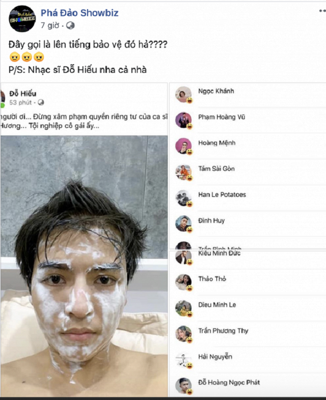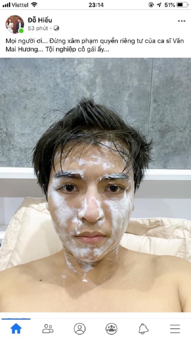 Đỗ Hiếu đã đăng tải dòng trạng thái: "Mọi người ơi.... Đừng xâm phạm quyền riêng tư của ca sĩ Văn Mai Hương.... Tội cô gái ấy". Sự việc sẽ không có gì nghiêm trọng nếu như Đỗ Hiếu không đính kèm hình ảnh bản thân kém nghiêm túc khi cởi trần và khuôn mặt đang ẩm ướt đầy bọt.