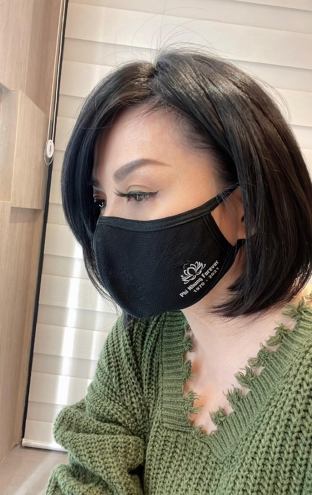 "Hôm nay đúng 100 ngày Phi Nhung từ bỏ trần gian để trở về lại nhà trời. Mình tưởng nhớ em bằng cách đeo cái khẩu trang này khi đi ra ngoài làm công việc. Có cô người Mỹ tại ngân hàng nhìn thấy và thắc mắc hỏi. Người đó là ai vậy? Mình trả lời. Người đó là em tôi, em ấy là cô gái có nửa dòng máu Mỹ giống như cô vậy đó nhưng em hát nhạc quê hương của chúng tôi còn hay hơn cả người Việt Nam chính gốc. She was a beautiful human being and had lived a meaningful and purposeful life. (Em ấy là một con người tuyệt vời và đã sống một cuộc sống đầy ý nghĩa). Nghe đến đó cô người Mỹ an ủi nói. “I’m so sorry for your loss (tôi thành thật xin lỗi cho sự mất mát của bạn)”. Mình cảm ơn cô Mỹ và nói. Sự ra đi của em ấy không chỉ là sự mất mát của riêng tôi mà là sự mất mát lớn cho cả nước Việt Nam chúng tôi.