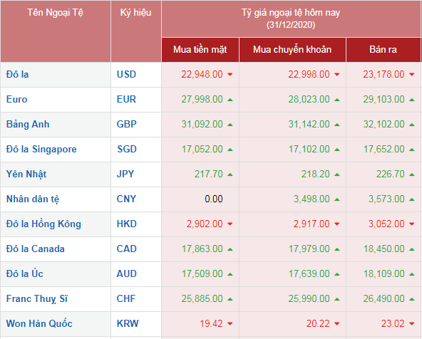 Rạng sáng nay (29/12), Ngân hàng Nhà nước công bố tỷ giá trung tâm của đồng Việt Nam với USD ở mức mua: 23.125 đồng và bán: 23.785 đồng . Các ngân hàng Việt Nam cũng có sự biến động nhiều, phổ biến ở mức mua vào 22.980 đồng và bán ra 23.220 đồng.