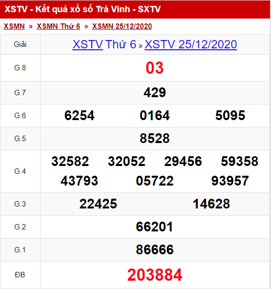 Kết Quả Sổ Xố Trà Vinh Thứ 6 ngày 25/12/2020