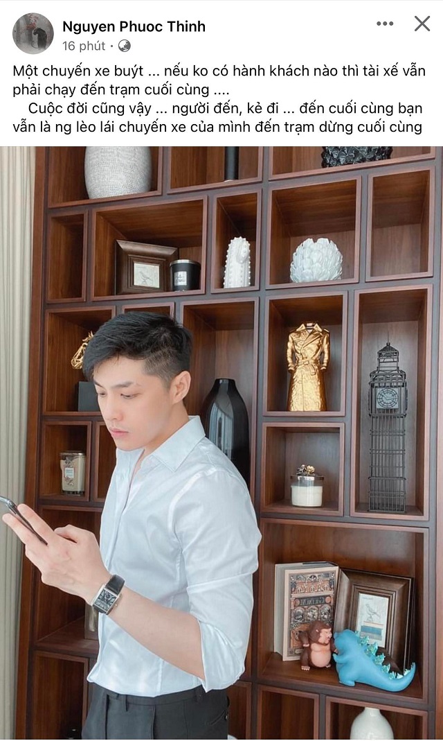 Chiều 13/12, Noo Phước Thịnh đăng tải trên Facebook cá nhân hình ảnh mặc sơ mi cực kì lịch lãm kèm dòng caption: "Một chuyến xe buýt... nếu không có hành khách nào thì tài xế vẫn phải chạy đến trạm cuối cùng... Cuộc đời cũng vậy... người đến, kẻ đi... đến cuối cùng bạn vẫn là người lèo lái chuyến xe của mình đến trạm dừng cuối cùng".