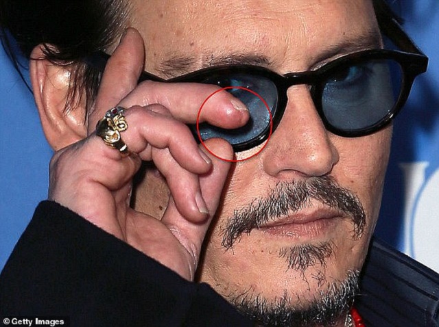 Để chống lại vợ trong vụ kiện về tội phỉ báng với số tiền bồi thường lên đến 50 triệu USD, Johnny Depp đã đưa ra những hình ảnh cho thấy khuôn mặt anh bầm tím, chứng tỏ là đã bị đánh đập (ở cả hai bên mặt).