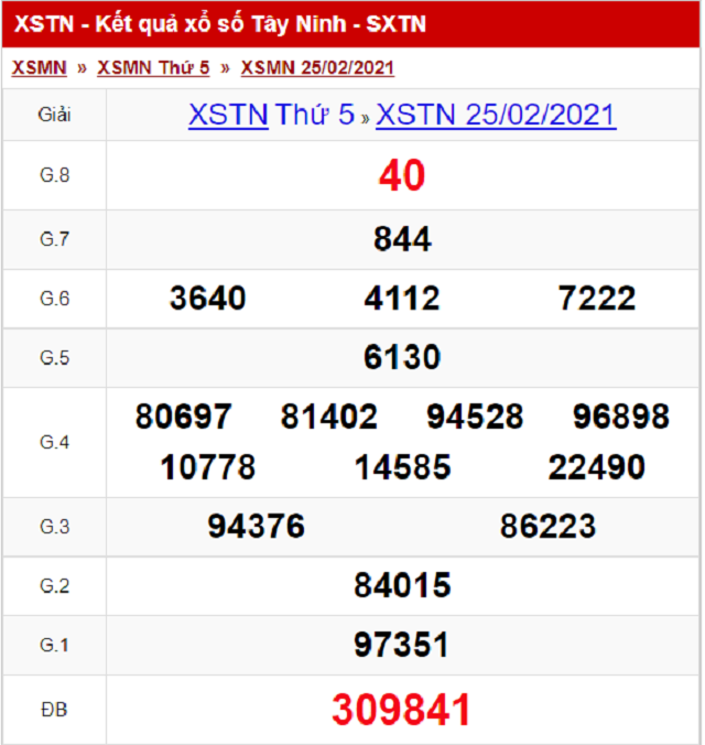 Kết Quả Sổ Xố Tây Ninh thứ 5 ngày 25/2/2021