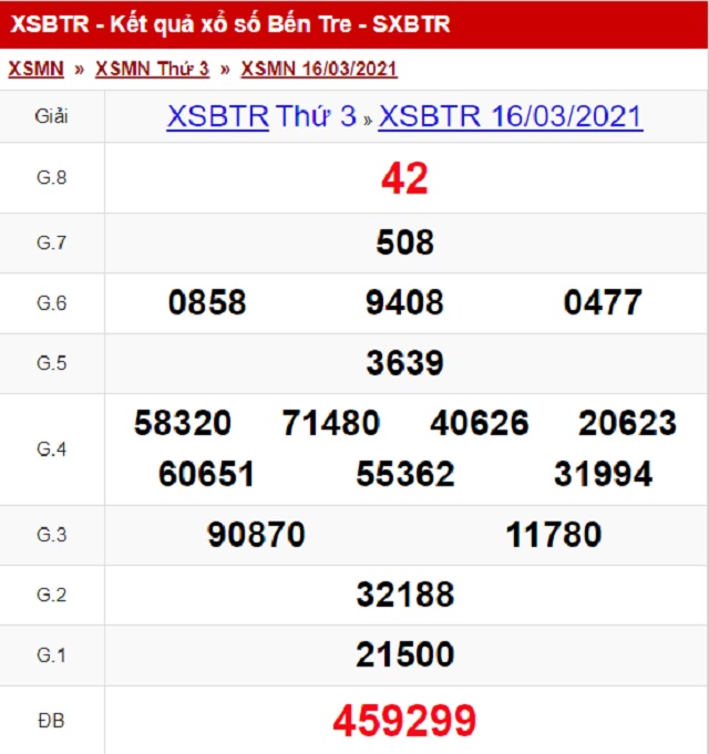Kết Quả Sổ Xố Bến Tre thứ 3 ngày 16/3/2021